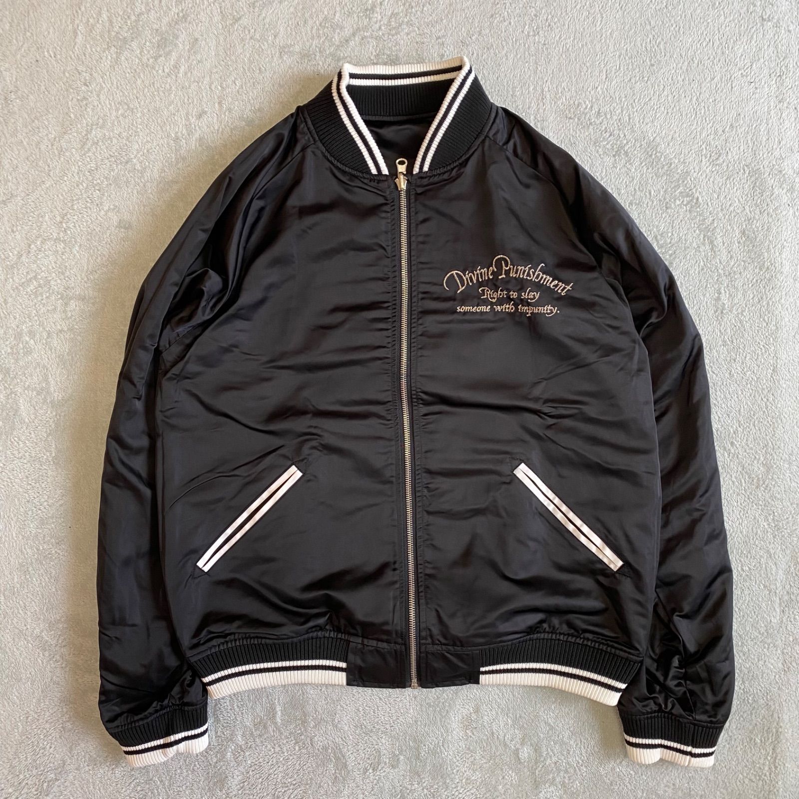 - メンズ > ジャケット・アウター > 抜刀娘 DIVINE RETRIBUTION スカジャン リバーシブル 刺繍 抜刀娘】レア リバーシブル 2way 超豪華刺繍 ラメ スカジャン 和柄