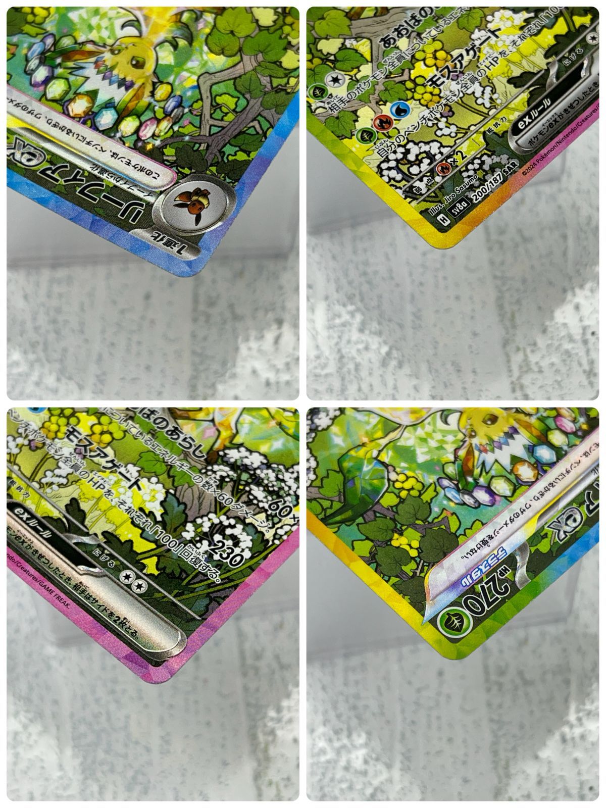 | 商品の特徴 | PSA10エーフィex SAR SV8a テラスタルフェスex 423 PSA10。PSA10エーフィex SAR SV8a テラスタルフェスex 423 PSA10。イーブイex SAR SV8a テラスタルフェスex 224/187 - メルカリ。この度はご覧頂き誠に有難うございます。⚫︎安全、安心な取引を最重要視しております。⚫︎安心、安全なメルカリ出品をしたい為、出品物は全て《あんしん鑑定をご利用推奨》させて頂いております。配送費用に関してもメルカリの指示に従う様お願い致します。⚫︎配送トラブル防止の為、《出品費用には配送費、梱包費を全て含んだ形》でヤマト運輸の佐川急便/日本郵便のSサイズ配送にて実施させて頂きます。交通事情等により集荷不可の場合はその旨ご報告させて頂きます。《詳細》PSA10評価でも小さなキズ等ある場合がございます。梱包時は折れ防止、濡れ防止致します。サンプル画像参照お願い致します。気持ちのよい取引が出来たら幸いです。検索用エーフィex SAR SV8a テラスタルフェスex 211/187シリーズ: スカーレット&バイオレットセット: SV8a テラスタルフェスexカード名: エーフィex型番: SV8aレアリティ: SAR鑑定状況···PSA10。PSA10ブラッキーex SAR[SV8a 217/187]テラスタルフェスex。⚫︎即購入、無言購入可能、希望価格を登録頂いた場合、内容吟味の上検討させて頂きます。シャワーズ ex SAR PSA10。-*-様 エーフィex SAR SV8a テラスタルフェスex PSA10。⚫︎商品は画像、タイトルのコレクション用PSA10鑑定品トレーディングカードになります。エーフィ&デオキシスGX SR SM12a TAG TEAM GXタッグオール…。ゼクロム・レシラム 25周年プロモ。あんしん鑑定ご利用の場合は鑑定機関から購入者様への配送はメルカリ指定配送業者になります。ピカチュウEX。早い者勝ち! ポケモンカード メガヤミラミ&バンギラスgx sa。鑑定機関から購入者様への配送費用は出品費用には含まれておりません。PSA10 ポケモン ボーマンダ SAR。ポケモンカードANAスペシャル99バージョン サンダー ファイヤーセット。⚫︎土日、祝日関係なく《原則24時間以内に発送》させて頂きます。新品未開封ポケモンカード ポケモンgo スペシャルセット 2個。トウコ ex sarのみ トウコ。⚫︎配送品トラブル防止の為、開封時は動画撮影頂きます様お願い致します。ポケカ sv2a 151 AR 18枚 コンプ no.548。カナザワのピカチュウ ①。PSA証明番号より詳細な確認もできますのでご不安な場合はご確認お願い致します。イーブイ&カラフル フレンズ クリアカード。未開封 ピカピカ!ピカチュウ!プロモキャンペーン!仰天のボルテッカー 5パック。PSAスリーブ→プチプチ→梱包袋→段ボールにて配送致します。ポケモンカード 旧裏面 レア・ノーマル混合 106枚 まとめ売り。リザードン ★ Pt4 アルセウス光臨 017/090。ご購入後の返品/返金/交換不可にてお願い致します。【新品未開封】ポケモンカード コンゴウ団 スペシャルセット。ポケモン ホワイトフレア SNKR DUNK限定。宜しくお願い致します。タッグチームRRセット+α | ||