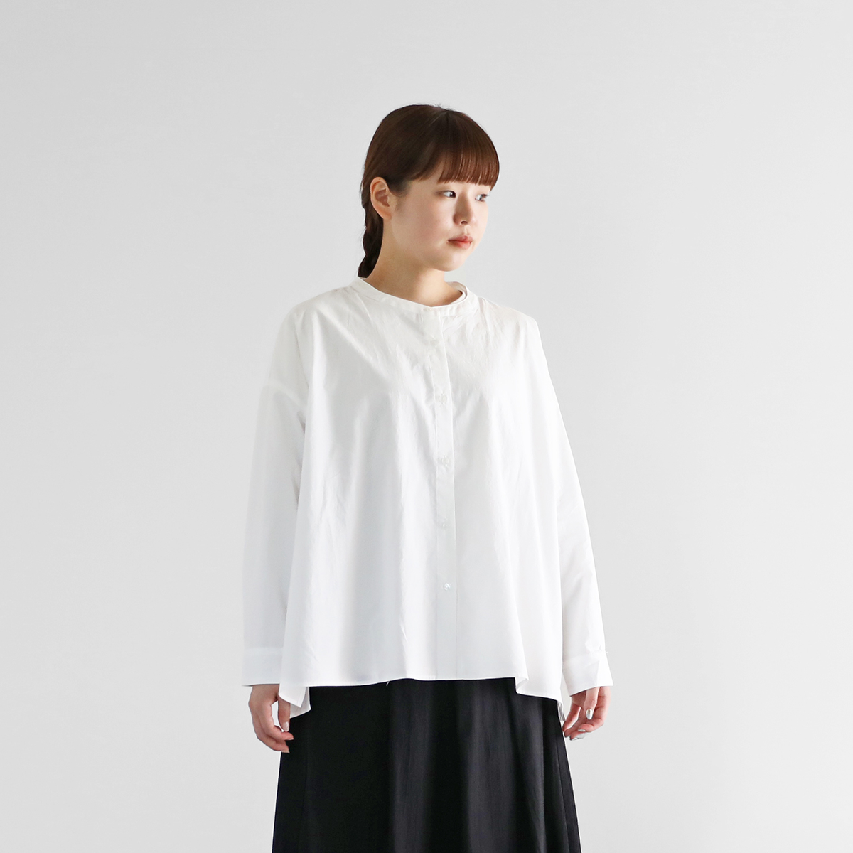 | メーカー名 | 3ef1f | ブランド名 | HUIS. 遠州織物オーガニックコットンバンドカラー半袖ブラウス |