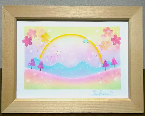 - アート・写真 > 絵画 > happy rabbit ハンドメイドパステル画 絵画アート原画 パステルアート Rainbow Blossom(レインボー・ブロッサム) 春の虹と桜