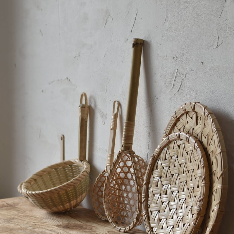 | 商品の特徴 | 脚付鉄線編ざる 小 Ф21 | ハモニ。鉄線編みザル | iichi 日々の暮らしを心地よくするハンドメイド。鉄線編み笊 Φ27㎝ 高台・かけ輪付 | enn。鉄線編み笊 Φ27㎝ 高台・かけ輪付 | enn。たかの出品ですスタジオK2にコンタクトを頂きましてありがとうございますご依頼の作品が完成しましたので是非ご覧頂きたく宜しくお願いいたします◇鉄線編みざる ・おおよそのサイズは直径330ミリが2枚、300ミリが1枚です ・竹の表面を磨いた(削る)ひごで編みあげました ・底部に脚を3か所付けました ・仕上げにクルミオイルを塗布してあります・販売価格は 直径330ミリ @3,900 直径300ミリ @3,700 一括購入値引き ▲1,500 です◇お買い上げをお約束頂くものではありませんので作品をご覧頂いてからご検討頂ければ結構です◇お買い上げ頂きました際はリサイクル梱包にて発送いたしますのでご了解願いますTZR250918 2025.9.11 | ||