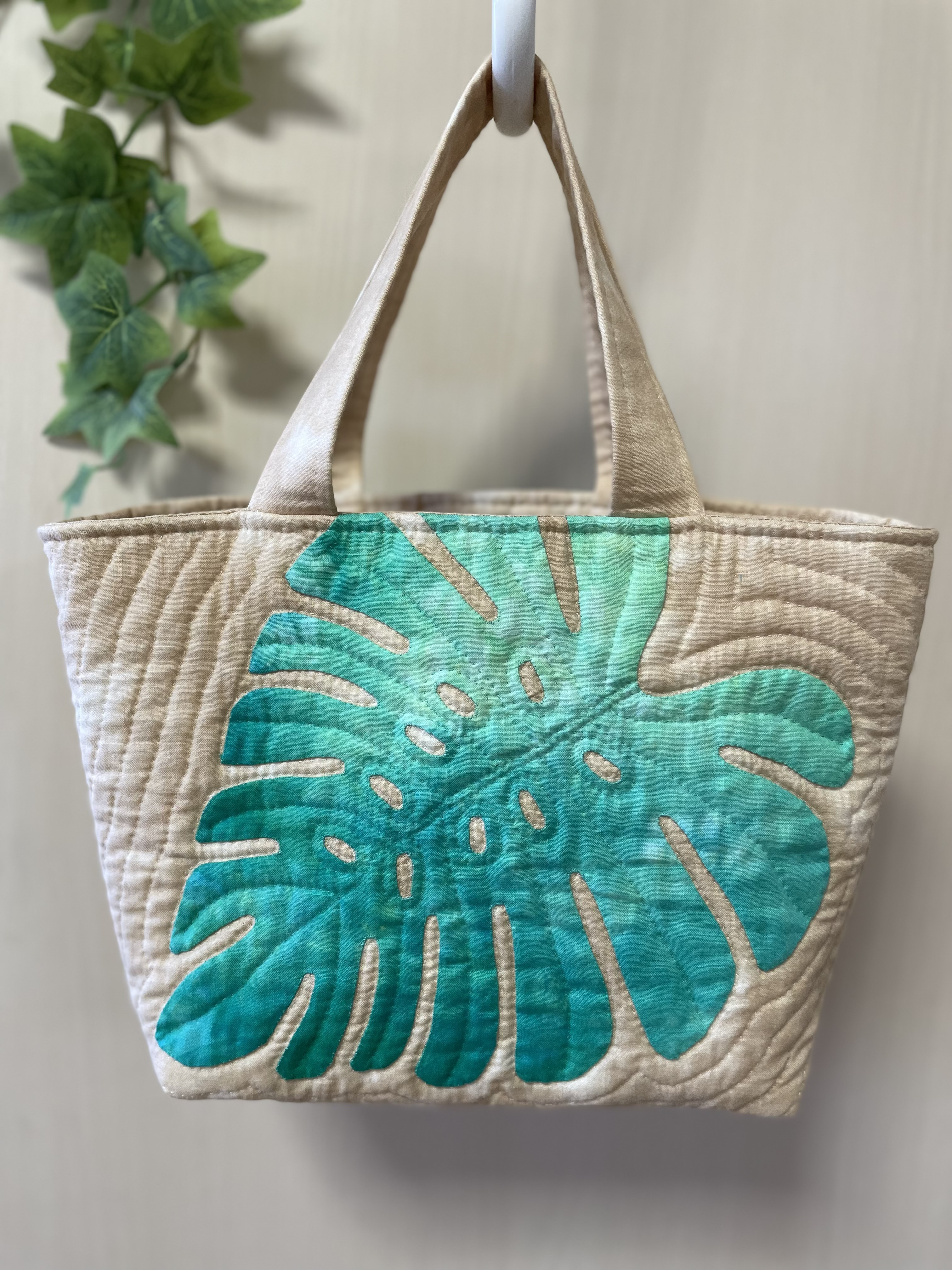 | メーカー | 絵画の様な縞プリント2でモンステラのトートバッグ ハワイアンキルト |