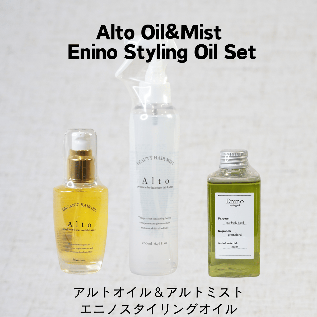 | メーカー | アルトオイル×2+アルトミスト×2 Altoオイル&Altoミスト&Eninoスタイリングオイル |