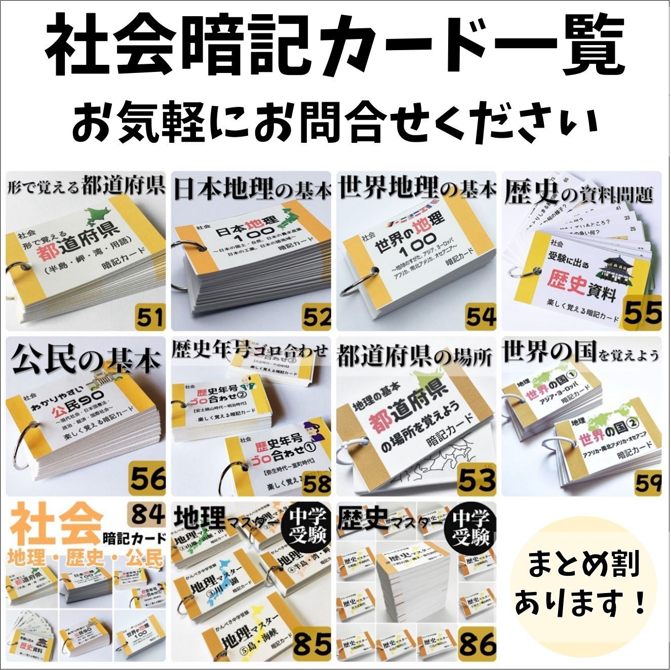 | メーカー名 | 661250da0e | ブランド名 | 【084】中学受験対策 社会の地理、歴史、公民 基礎暗記カードセット 中学入試 084】中学受験対策 |