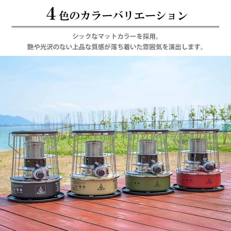 | 商品の特徴 | アルパカストーブ 専用バッグ付 セット 石油ストーブ TS-77 NC。Amazon.co.jp: ALPACA PLUS Official Store TS-77 NC (Green。Amazon.co.jp: ALPACA PLUS Official Store TS-77 NC Small Oil。カセットガスストーブをAmazonで購入したつもりでしたが石油ストーブだったので、返却できないので出品します。以下説明分【安心してご使用いただくために】アルパカプラスストーブは唯一海外メーカーの中で日本のPSC法案を遵守し、JHIAの安全試験全てに合格したJHIAの認証を取得している商品です。【安全な対震自動消火装置】地震や衝撃を受けた際、瞬時に消化を行う、JIS規格に適合した緊急自動消火が備わっております。ALPACA PLUS アルパカストーブ TS-77 NC (Green)。商品確認のため開封しましたが、もちろん未使用です。石油ストーブ GKP-P243N(K) 未開封から開封のみ。未使用品石油ストーブ SL-6616 コロナ 2017年製。よって、屋内で安心してご使用いただけます。【引取専用】コロナ SL-6621 2021年製。ガスファンヒーター リンナイ 型番:SRC-365E。型式名:TS-77NC 種類:しん式・自然通気形 自然対流形 点火方法:点火用ライターまたはマッチサイズ:H420×W350×D350mm 重量:6.6kg連続燃焼時間:約10時間 暖房出力:3.0kW 暖房の目安:13~17㎡タンク容量:3.7L 使用燃料:灯油 (JIS1号灯油)安全装置:対震自動消火装置(しん降下式)ALPACA PLUS(アルパカプラス) 石油ストーブ アルパカストーブ グリーン TS-77 NC●型式名:TS−77NC●種 類:自然通気型開放式石油ストーブ(しん式・自然対流形)●外形寸法:高さ420mm×幅350mm×奥行350mm●重量:約6.6kg●油タンク容量:3.7L●しんの種類:普通筒しん(TS−77NW)●しん呼び寸法:径95mm×厚3mm×長200mm●消火装置:対震自動消火装置(しん降下式)種別···石油ストーブ | ||