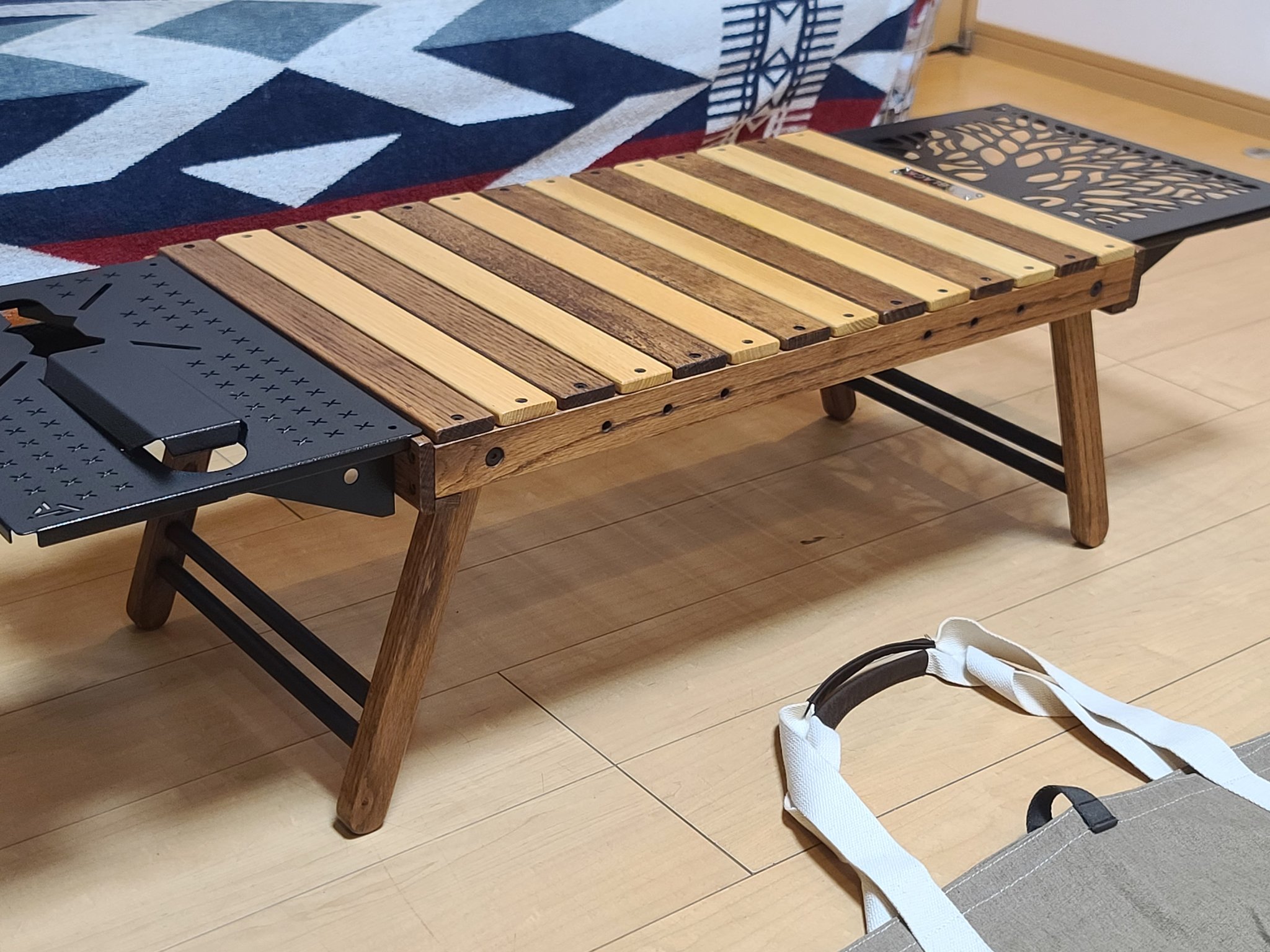| 商品の特徴 | BLACK DESIGN ブラックデザイン アイアンウッドテーブル。BLACK DESIGN ブラックデザイン アイアンウッドテーブル 日和。新入荷速報】BLACK DESIGN (ブラックデザイン) ハレテーブル。ご覧いただきありがとうございます。新品未使用BLACK DESIGN ブラックデザインアイアンウッドテーブル 日和 HIYORI折りたたみできるローテーブルです。中央・左右にアイアンプレート等を取り付けできます。中央に取付可能:アイアンプレート(ノーマル・ツリー)・BX-PLATE・ミックスウッドプレート左右に取付可能:アイアンプレート(ノーマル・ツリー)・BX-PLATE材質:オーク/アイアン/アルミ付属品:収納袋折り畳み時:W45 D38.5 厚み5.2cm開いた状態:W60.5 H29 D38.5cm。OWL OUTDOOR -BLACK DESIGN [正規取扱店]-。スノーピーク セパレートIGT フレーム 2ユニット 収納ケースセット。抽選販売品 入手困難★ Xスタンドset ピノワークスモデル ブラックデザイン | ||
