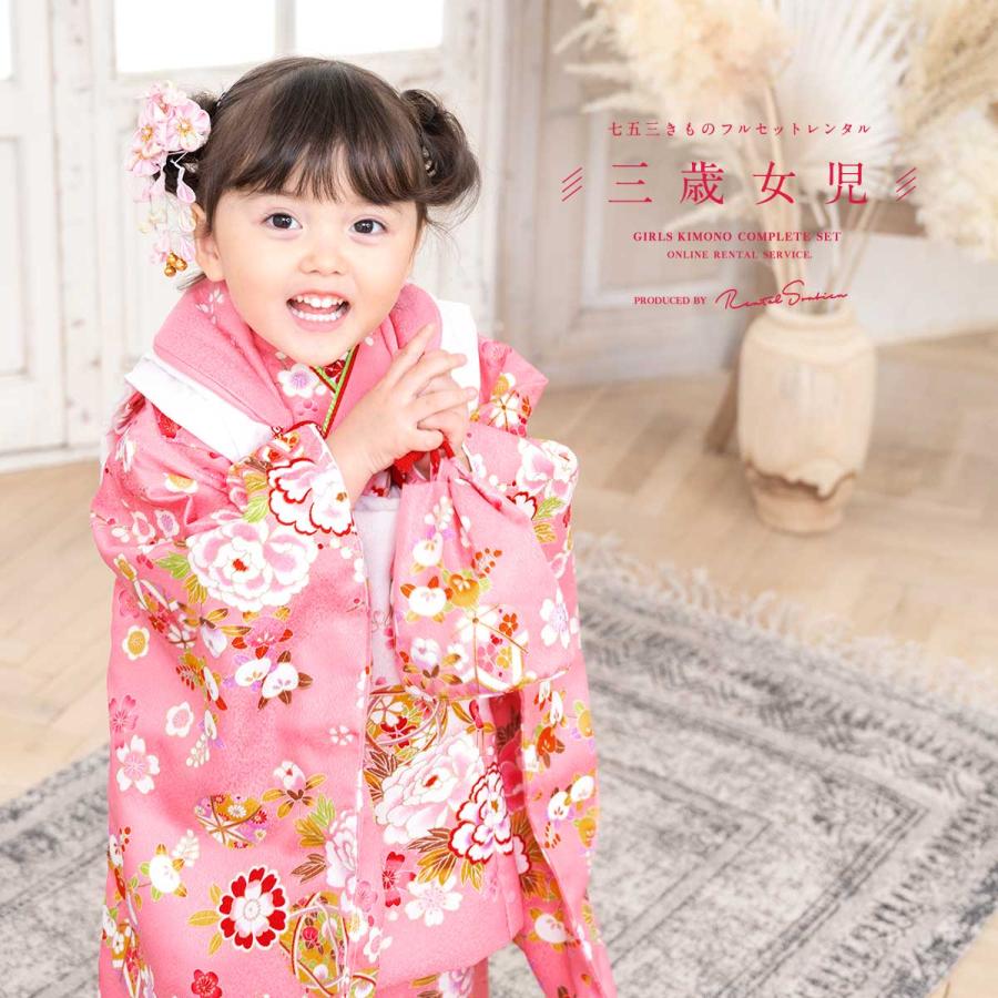 - 季節・年中行事 > 七五三 > 七五三 着物セット フルセット 白 ピンク 花柄 女の子 3歳 7点セット SOUBIEN レンタル 七五三 女の子 3歳 着物 被布 フルセット 白