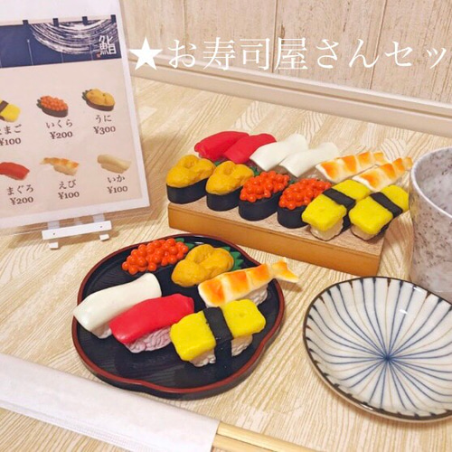 | メーカー | お寿司set⭐️新品レア含む4枚⭐️まぐろ いくら うに2color⭐️ 本格的✨お寿司屋さんごっこ |
