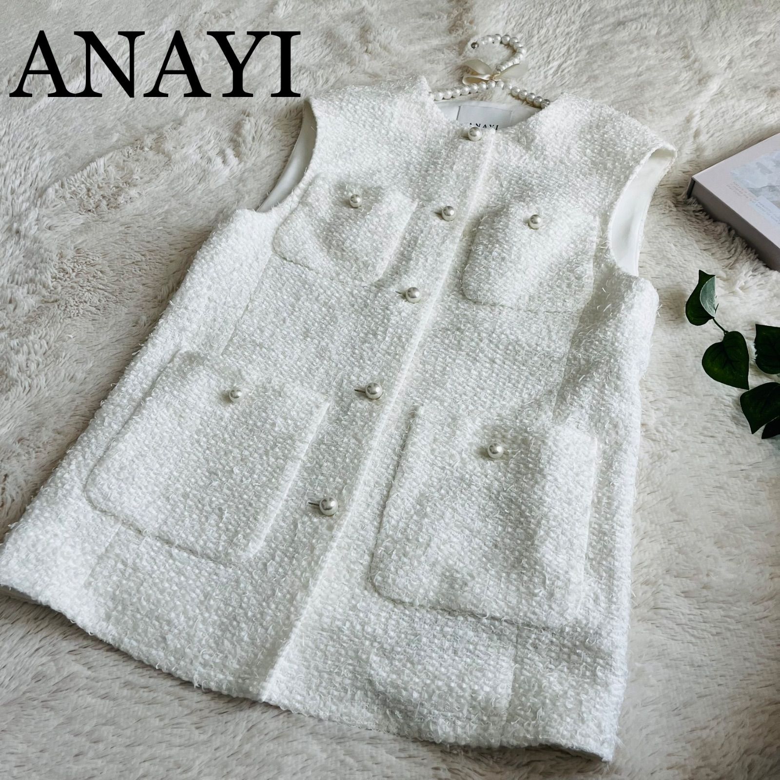 - レディース > ジャケット・アウター > 美品✨ANAYI✨カラミツイードジャケット パールボタン 2022 ホワイト36 ANAYI 36 カラミウールツイードポケットジレ新品タグ付き