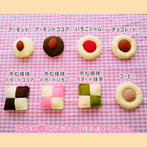 | 商品の特徴 | フェルトおままごと クッキー屋さん♪選べるクッキー6枚セット。フェルトおままごと クッキー屋さん♪選べるクッキー6枚セット。フェルトおままごと クッキー屋さん♪選べるクッキー6枚セット。ご覧いただきありがとうございます!組み合わせ色々♪お好きなクッキーを6枚選んでください☆自分だけのクッキーセットが作れます!フェルトで作ったクッキーセットです。STEP1 : 〈クッキー①〉から3枚お選びください。バター、ココア、スクエアココア、スクエア抹茶、ハートチョコチップ、ハート抹茶、ハートいちご、ハートバター(写真3枚目)STEP2 :〈クッキー②〉から3枚お選びください。リーナベルコスチューム。マガリン ぬい服と靴。すのチルぬいサイズぬい服セット あべちゃん衣装 ボルドー。vera様 つまみ細工 十二支。ぬい服 オーダー品5-36(②) 碧様 ちびぐるみ補正サイズ。Glanz★出品。チルぬい すのチル Man お洋服セット。★オーダー ブリトーページ。cafelatteさま専用ページ ラボ服 らぼ服 ハンドメイド 服。kei様ミニチュアドール用 甲冑(約8cmドールサイズ)。ニル様 リクエスト あんスタ いつぬいぬい服 2点 まとめ商品。ひよこページ。Mint様☆専用ページ。me❁⃘ プロフィールを読んでください❁出品。ガチャピンページ 部活お守り。a48d65f24587742e0ce1ca3325b38c。ペビピコ シェリーメイ 用コスチューム スイカセット。ショコラです。アーモンド、アーモンドココア、いちごジャム、チョコレート、コーヒー、市松模様バター×ココア、市松模様バター×いちご、市松模様バター×抹茶(写真4枚目)合計6点です♪お選びいただいたものを取引メッセージ内でお伺いしております。何かわからないことがありましたら、お気軽にメッセージをどうぞ♪※サイズは4.5~5cm、厚みは1cmほどです。※クッキー缶、お皿、小物等は撮影用のため商品に含まれません。〈材料〉フェルト、刺繍糸、綿を使用しています。接着剤、厚紙は使っておりません。一つ一つ丁寧に制作していますが、大きさ、形、縫い目のふぞろい、フェルトの毛羽立ち多少あります。気になる方はご遠慮くださいませ。ハンドメイドの味とご理解いただける方のご購入をお願いいたします。○○発送について○○こちらの商品は、発送までに1週間いただいております。☆包装は簡易ラッピングですので、ちょっとしたプレゼントにいかがでしょうか☆(写真10枚目です!)※お子様が使用される際は誤飲にお気をつけください。※写真の光り具合によっては実物と多少異なることがございます。※ペット、喫煙者おりません。ハンドメイド作品のため、お値下げ交渉は対応しておりません。注意書きが多くなってしまいましたが、ハンドメイドの温かみをお届けできたら嬉しいです!☆最後までお読みいただきありがとうございました☆○YouTube○作品の制作風景や、作り方を動画で紹介しております。ぜひ、のぞいてみてください(^^)チャンネル名「手作りおままごとUki」#フェルト#ハンドメイド#おままごと | ||