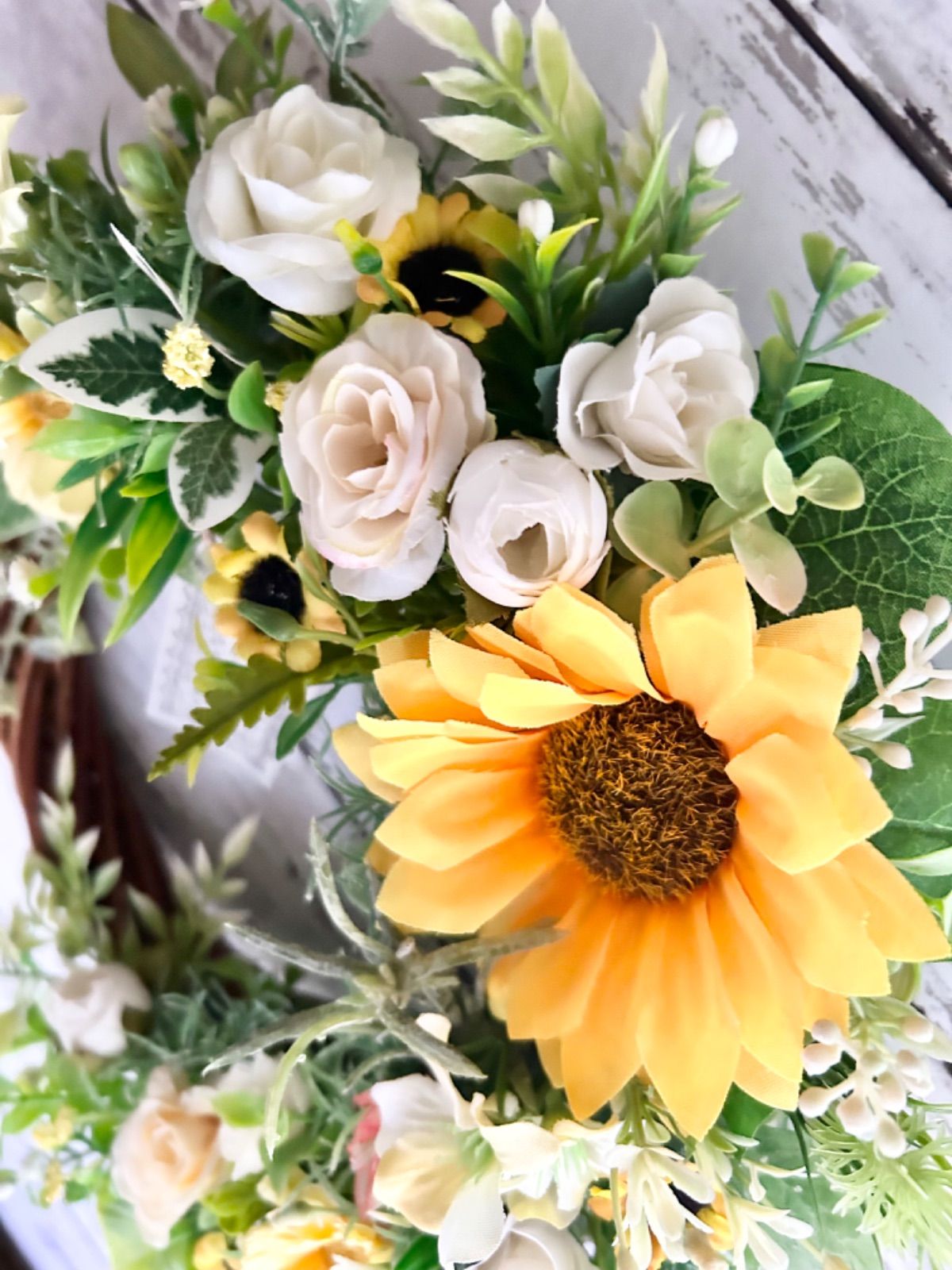 | 商品の特徴 | 専用 超特大 ガーベラとマーガレットのフラワーリース 50cm。専用 超特大 ガーベラとマーガレットのフラワーリース 50cm 専用。プリザーブドフラワー【ガーベラとマーガレットのリース】直径。ガーベラ・マーガレットを主に優しい薄いピンクのお花で仕上げた特別なフラワーリースです(*ˊᵕˋ*)全体の大きさ→直径約50cm(葉先から葉先まで)全て一点物です使用するパーツは数が限られてます同じ商品はありませんのでお見逃しのないようにして頂けると幸いです(•ᵕᴗᵕ•)フェイクグリーン・フェイクフラワー(アーティフィシャルフラワー)を使用していますグルーが見える場合があります_(._.)_ 配送中にパーツが取れてしまった場合はお手数ですがお手持ちの接着剤などで固定をお願いします<(_ _)>超特大サイズの為、メルカリ便発送です発送の際はコンパクトに梱包させていただく場合がありますので開封後は花材など優しく整えてあげてください業者ではありませんので完璧を求める方や細かい事を気にされる方は控えた方がよいかと思います送料・手数料・材料費等掛かりますので値下げ交渉ご遠慮ください( ´•̥̥̥ω•̥̥̥`) からもご覧頂けます(*ˊᵕˋ*)プロフィール欄もご確認よろしくお願いいたします✧︎*。マーガレット:スマッシュ ローズ&ホワイト11cmポット の通販。 | ||