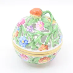 | 商品の特徴 | ヘレンド ファンタジー ボンボン入れ ボンボニエール 花 苺 小物。Herendヘレンド🦋🧙ファンタジー👑大きなボンボン入れ口径約15。ヘレンド 小物入れ □ ボンボニエール キャンディーボックス。*Herendのキャンディー(ボンボン)や小物、装飾品などを入れて使う愛らしい形状の小さな容器です。HEREND ヘレンド ボンボニエール ファンタジー 透かし 小物入れ。約W5×D5×H5cm蓋がすれあう部分に擦れがありますがその他気になるダメージはなく良い状態だと思います。マイセン Meissen 1780-90年頃 金彩花絵 ディナープレート。- デザイン: 花柄の装飾が施された白磁の蓋付き容器- 色: 白地に多色の花柄- 素材: 磁器- 金縁: 金色の縁取りが施されている===正規サイトの商品説明見ているだけでも楽しくなる愛らしいフィニアル(つまみ)がついた小筺のコレクション。ロイヤルアルバート ケーキ皿5枚。アクセサリー入れ、お菓子などを入れてお客様をおもてなし。未使用 有田焼 ARITA 幸山窯 三段重 大輪牡丹 手提付き 持ち手付き。ポプリなんかを入れて飾って香りを楽しむのにも最適お塩やオリーブなんかを入れて食卓を楽しむ。♡フェイラー♡九谷焼レッド。楽しみ方は色々です。【7/11迄の出品】アラビア パラティッシパープル プレート 26cm 2枚。===中古品/未使用の長期保管品 となります。アラビア ヴィンテージ ペッカ プレート 20.5cm。検品はしておりますが、見落としている細かなダメージがある場合がございます。エクレクティックカイカイ『クバの大地』プレート パスタ皿 5枚。完璧な状態をお求めの方や新品同様をお考えの方は、恐れ入りますが購入・入札をご遠慮ください。E*O様 【美品】Meissen マイセン 干支プレート 2006年 陶磁器。また、照明やご使用の端末により実際の色味と異なって見える場合がございます。三谷龍二さん 白漆ボウル。ご覧いただきありがとうございます。【美品】 九谷青窯 作家もの 色絵鳳凰と花 6寸鉢 2枚セット。 | ||