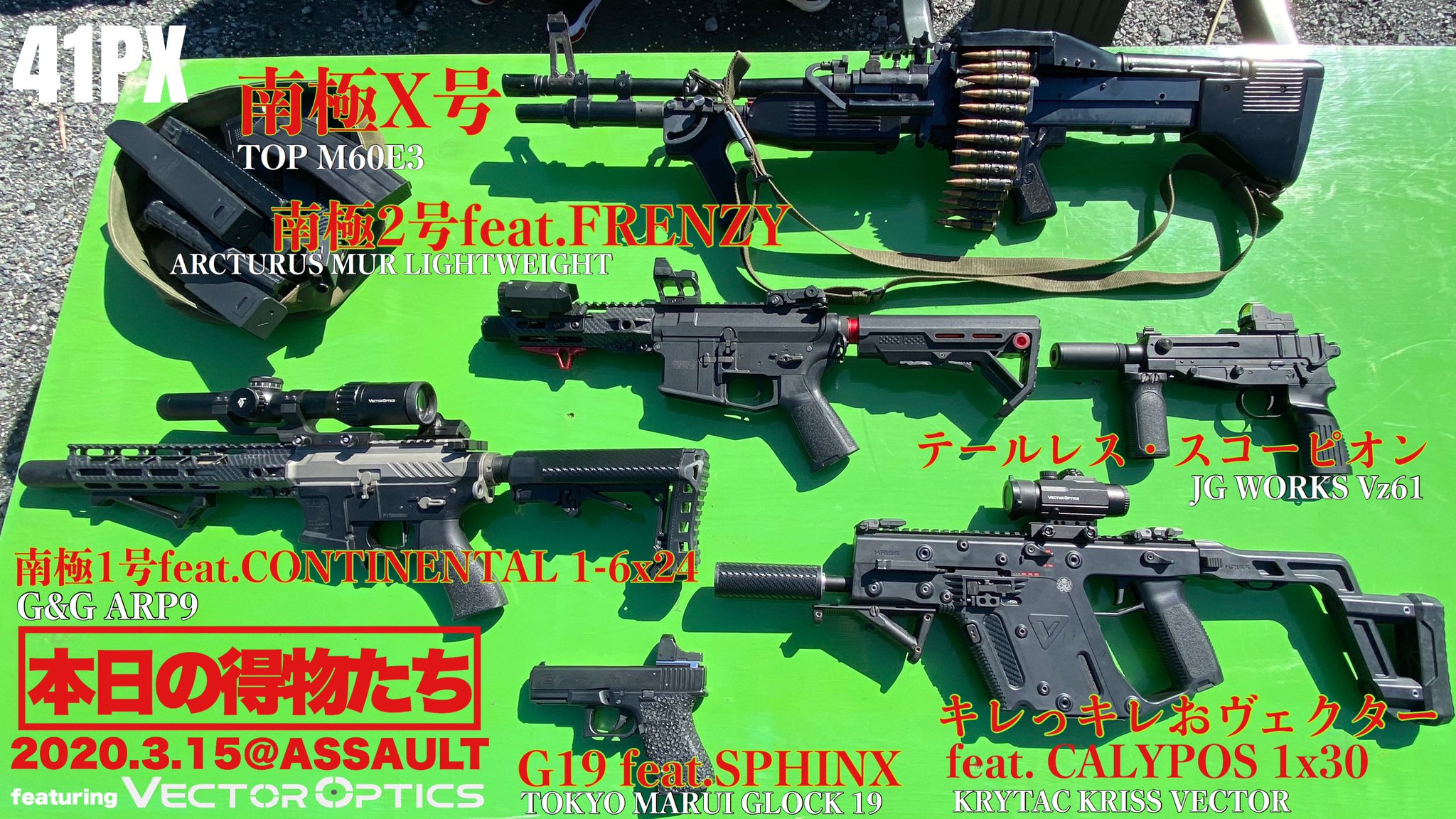 | 商品の特徴 | 東京マルイ 41PX 南極3号改 g&g ARP556 カスタム多数 41PX 南極3号改。G&G 41CW NO.42 「南極3号 改」 | G&G エアガン,41 CUSTOM WORKS。41PX限定モデル 南極3号改。41PXにて購入したARP556の南極3号改です。タナカ Kar98k AIR リアルウッド 一式セット。細かい傷等はありますが状態は良いです。東京マルイ ハイキャパe 電動ハンドガン。マガジンは他で使ってしまったので無いです。東京マルイ 89式小銃 ガスガン。写真の現品のみです。G&G arp556 南極3号改 41PXカスタム|Yahoo!フリマ(旧PayPay。・カスタム内容・メタル(アルミアロイ)レシーバー・M4クレーンストック仕様・高耐久カスタム・ハイスピードギアセット実装・ORGA製メタルタイプ軸受発送時、段ボールないためプチプチを2重にて発送致します!使用回数は2回(室内)200発位です。ほぼ新品です。東京マルイ次世代電動ガンMK18 セット。東京マルイ MK18 MOD.1 ガスガン 15日まで。また本商品掲載前に41秋葉にてオーバホールして点検もしてもらいました。動作確認も行いましたが問題無くキレキレでした。Marushin マルシンルガーP-08 モデルガン ゴールド SMG規格品。東京マルイDESERT EAGLE .50AE ガスガン ステンレスモデル。ノーマルと多弾を2個付けます。おまけ程度で考えて下さい。東京マルイ 次世代電動ガン SCAR-Heavy スカーH 付属品多数 極美品。【マスダヤ】電動機関銃 カムフラージュ シュマイザー MT-36。メーカー···G&G種類···電動ガンタイプ···サブマシンガン | ||