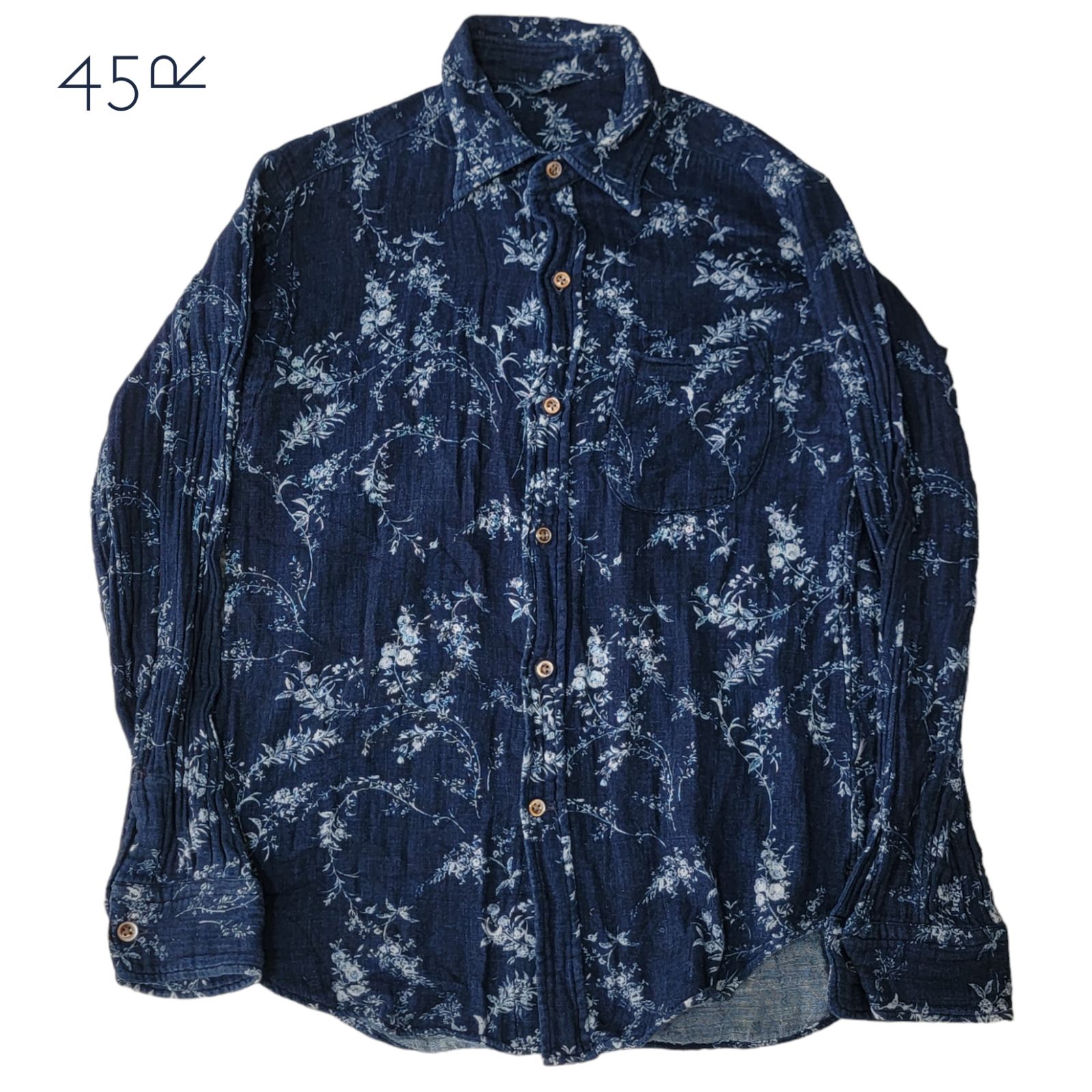 | メーカー | ✴︎お値下げ中✴︎45Rインディゴ花柄ブラウス 袖口裾に丁寧なレース刺繍 体型カバー |
