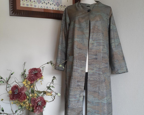 | メーカー | 正絹白大島紬 着物リメイク ジャケット コート ☆ |