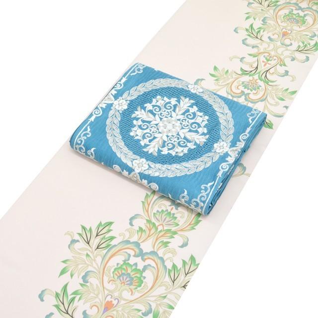 | メーカー | 正絹長襦袢生地反物 紋楊柳ミントグリーン地色色紙に牡丹菊文白絞り入り 13.5m |