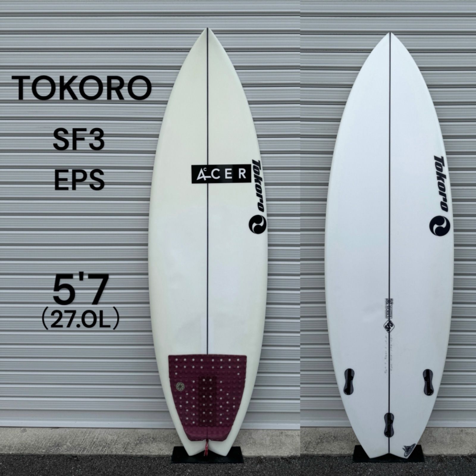 | 商品の特徴 | Tokoro surfboard トコロ サーフボード K6 EPS グリーン。サーフボード tokoro TOKORO SURF BOARD 6'1。TOKORO 〜5'6〜 都筑有夢路 プロ 使用ボード A#019 中古 サーフボード。Tokoro Surfboards。トコロサーフボード SF3 26.30リッター 5'8\"1/2 18 7/8 2 3/8 傷はありません 黄ばみなし 65キロまでの体重に最適 新品から2回使用フォーム素材···PUフィンシステム/フィンボックス···FCS2フィン本数···ファイブフィン(5FIN) | ||