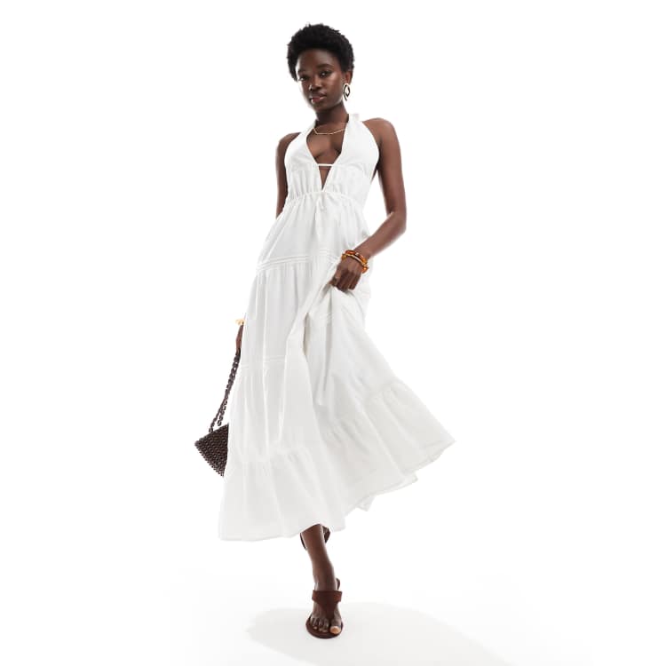 - 文房具・事務用品 > テープ・マスキングテープ > Bell♡ 1109 Bershka – Kaskadowa biała sukienka maxi z dekoltem typu