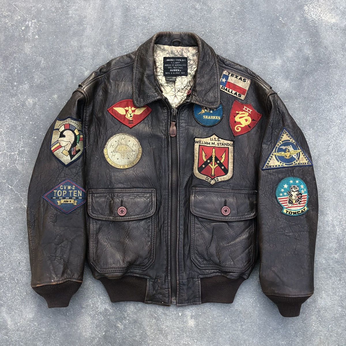 - メンズ > ジャケット・アウター > 87年製 USA AVIREX G-1 FlightJacket TOP GUN Vintage Avirex Top Gun USS Type G-1 Leather Flight Jacket