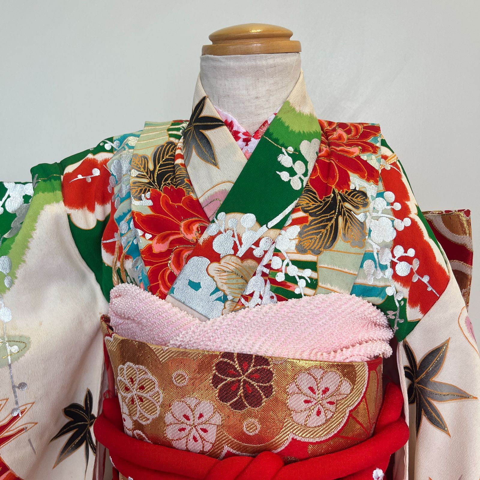 | メーカー | 7歳七五三 ハーフ成人式 アンティーク正絹着物、帯揚げ、帯締め しごき |