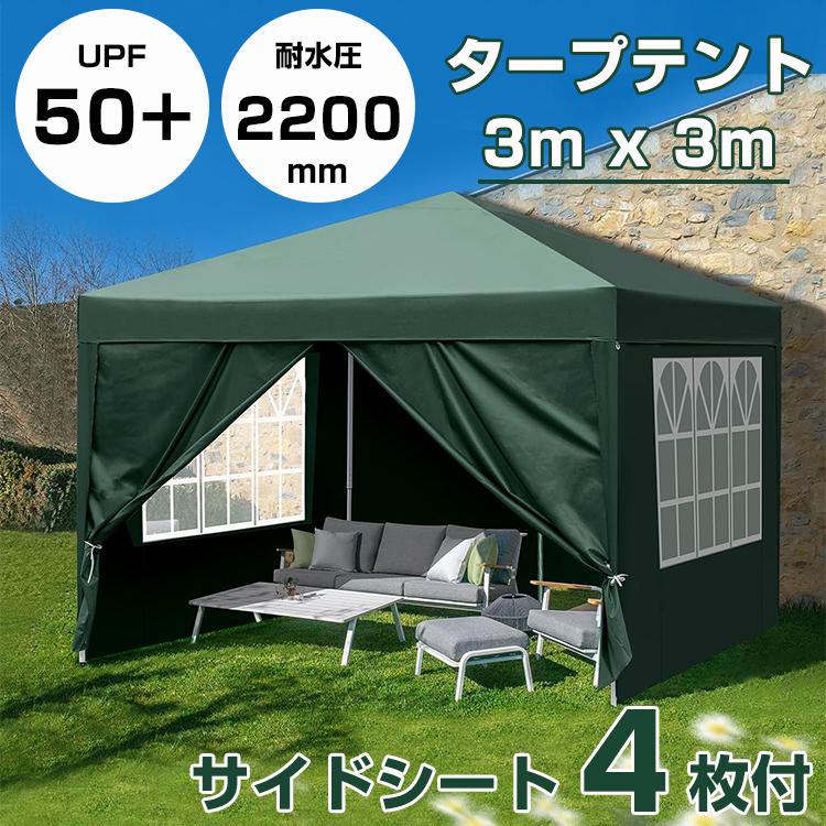 - アウトドア > テント・タープ > 【ダークグレー】タープテント 3mサイドシート4枚付 UV加工 撥水 ワンタッチ ダークグレー】タープテント 3mサイドシート4枚付 UV加工 撥水