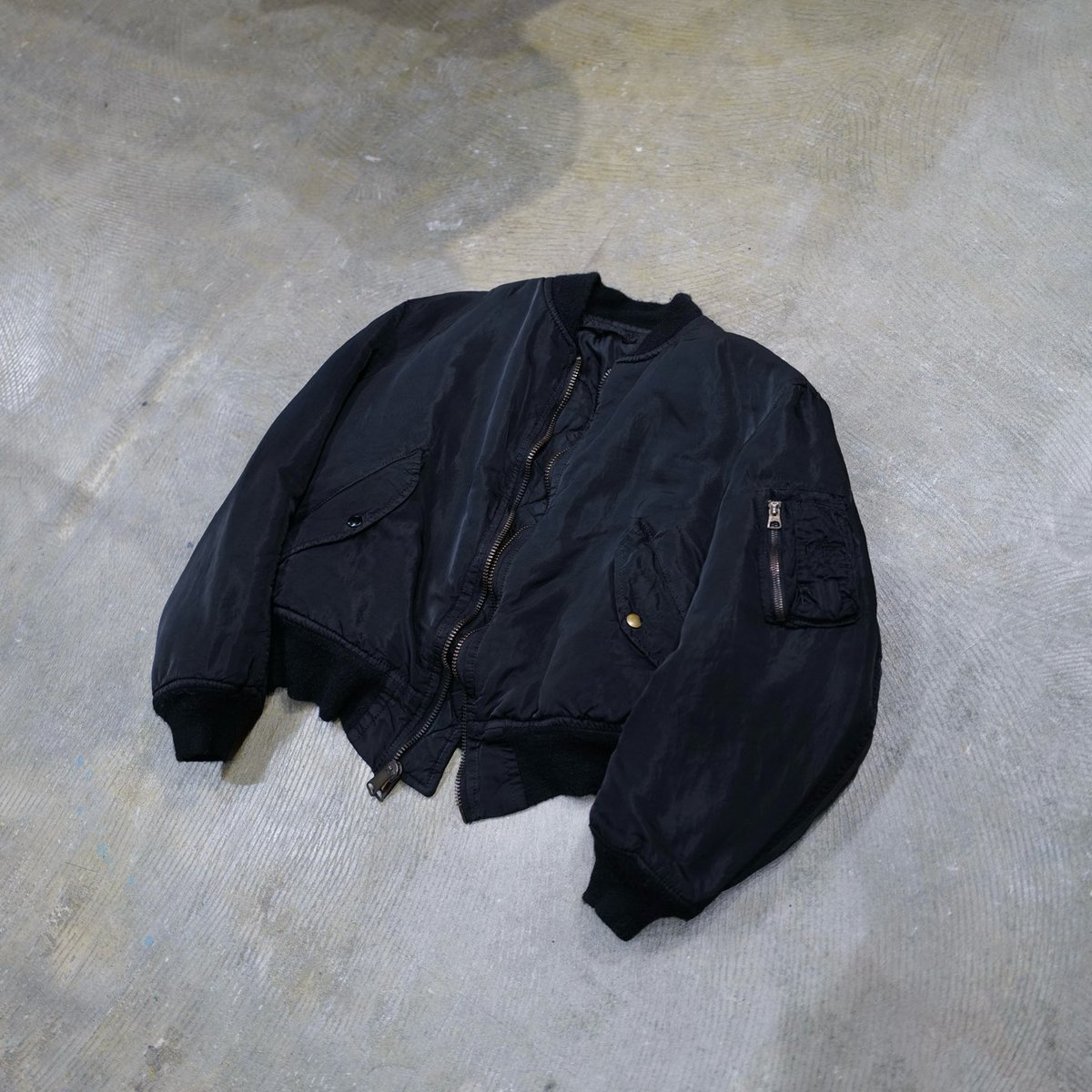 | 商品の特徴 | Super Black。Super Black。ジャケット・アウター 。\"Super Black\" Shrink MA-1_Black Rib anytee2025年1月 オンラインにて購入商品。1980年代のUSA製のアルファインダストリー社のヴィンテージのMA-1を贅沢に黒染めした逸品。ナイロン、コットンそれぞれ各1回、合計2回染めているため、裏地のオレンジまで生地が真っ黒に染まっています。高温で染めているため、ジッパーがゆがみ、着丈を中心に縮んでいます。短丈のアウターを楽しみたい、古着だけでなく新品の服を組み合わせて着るような、170cm以下の細身の男性の方や、女性がダボッと羽織るケースにオススメです。◯anyteeならではの\"Super Black\"の特徴独特の光沢は高級感があり、肌触りもシルクのようにしっとりしているとよく言われます。しかも、何度洗っても黒が薄くならない染め方をしているため、黒さを長く楽しめるのも魅力です。※洗濯機で洗えます(単品洗い推奨)コムデギャルソンやアンダーカバーなどの製品染めを手がける東京で100年以上続く老舗工場とanyteeの協働制作により生まれた新しい定番です。[MADE]1980's USA[CONDITION]used good condition[SIZE]平置き実寸 cm着丈.肩幅.身幅.袖丈 55.48.60.58。rBVaqGE5cQyAGxRaAAGJ4vjK5yo684.jpg。swap motors TSY MA-1 フライトジャケット パッチ付き。PAM パム 刺繍 リバーシブル ボンバー ジャケット MA-1。MATIN AVENIR MA-1 パフィジャケットブラック。新品 RRL コットン フライトジャケットウォッシュド オリーブ ラルフローレン。h*i様 entire studios A-2 BOMBER JACKET。DIESEL MA-1 ダークグレー リバーシブル バックロゴ。ALPHA INDUSTRIES CWU-45/P フライトジャケット USA製 | ||