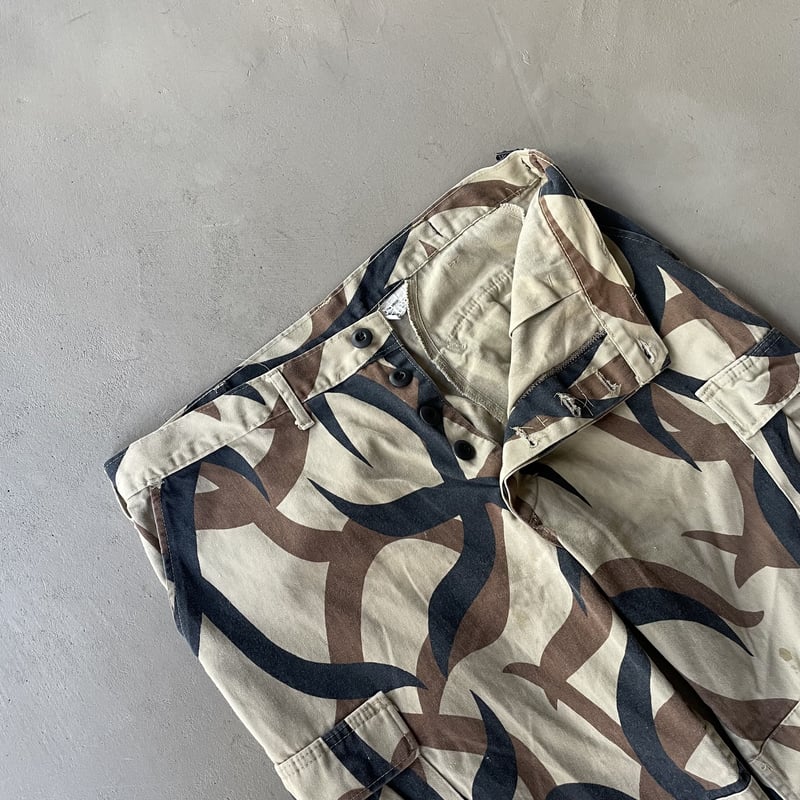 | 商品の特徴 | Brigade Quartermasters ASAT トライバルカモ パンツ Brigade。Brigade Quartermasters ASAT トライバルカモ パンツ Brigade。希少 90s ASAT リップストップ生地 トライバルカモ フィールド。1990年代の ASATトライバルカモ パンツ です。ASATカモを開発した軍納入業者 Brigade Quartermasters によるアイテムで、雰囲気ある一本となっています。素材は厚手のコットンツイル。これから涼しくなる季節に最適です。小傷はありますが、目立つ汚れや大きなダメージはございません。サイズ:表記 Medium-Regular多くの方に合わせやすいバランスのサイズ感です。※下記実寸を参考にご確認ください。ウエスト:43cmレングス:75cm総丈:100cm多くのブランドがサンプリングした存在感のあるアイテムです。。80s ヴィンテージ トライバル カモ パンツ S 迷彩 ASAT 米軍 USA。60s フランス軍 ラミーリネンセーラーパンツ ジッパー式 ミントコンディション。【ARAN】FATIGUE 46 - COOL MAX TWILL。orslow オアスロウ ベイカーパンツ ファティーグ M 日本製。【新品未使用】YANUK✖️藤原裕SUNDAY ペインターパンツ Lサイズ。ENGINEERED GARMENTS ✖️ビームスプラス別注32サイズ。ENTIRE STUDIOS Heavy Gocar カーゴパンツ。専用 ERL cargo pants | ||