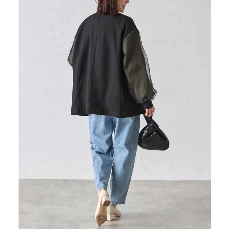 - レディース > ジャケット・アウター > 袖チュールレイヤードMA-1風デザインジャケット ブラック 新品. 予約】袖チュールレイヤード MA-1風 デザインジャケット | hanao