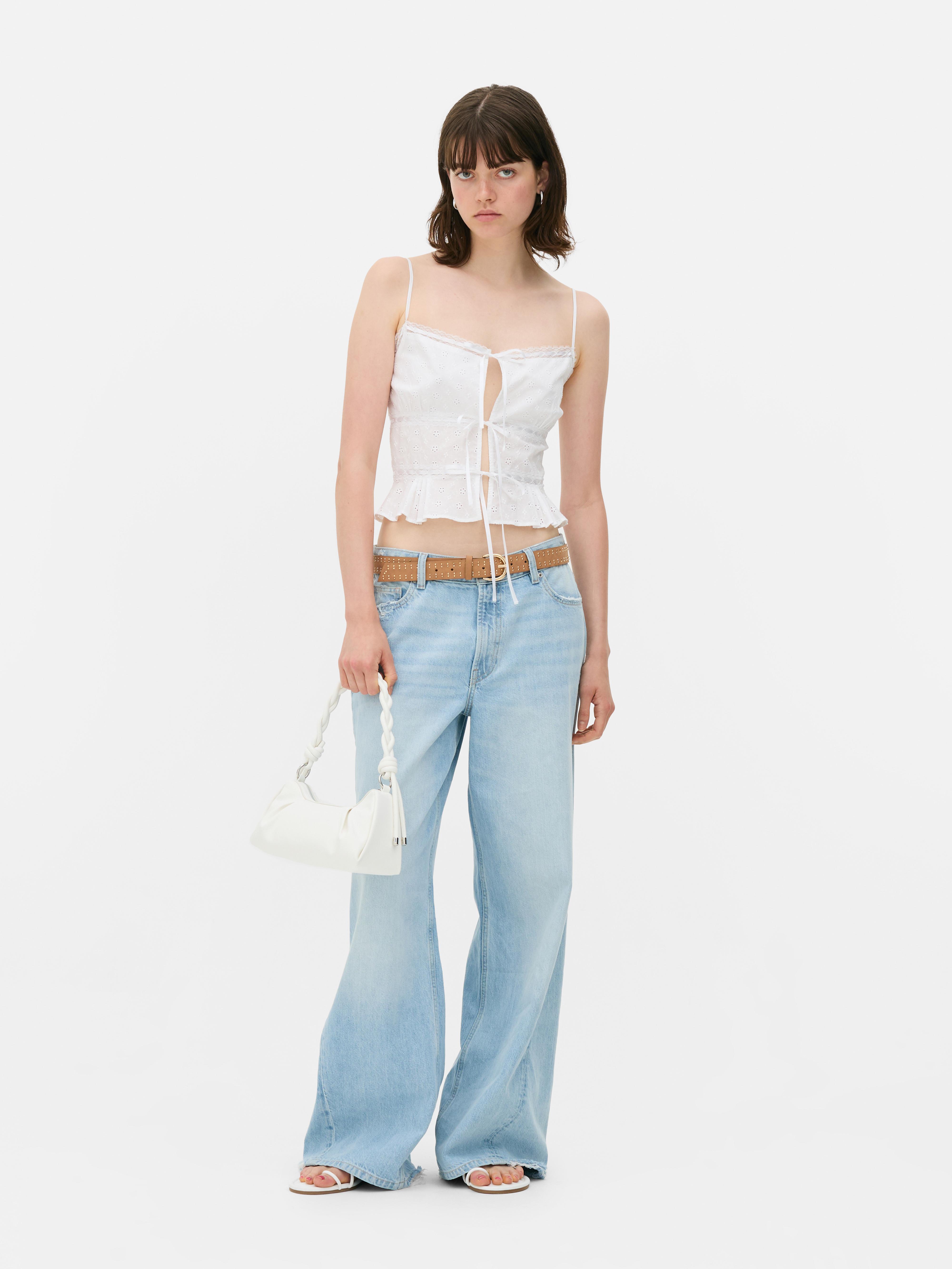 - レディース > トップス > eyelet ribbon cami (white × blue ribbon) Womens White Ribbon Tie Cami Top | Primark