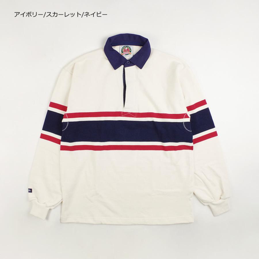 - ラグビー > ウェア > カナダ製 バーバリアン 長袖 ラガー シャツ XL ボーダー ベージュxネイビー Barbarian バーバリアン BARBARIAN クラシック ラグビーシャツ
