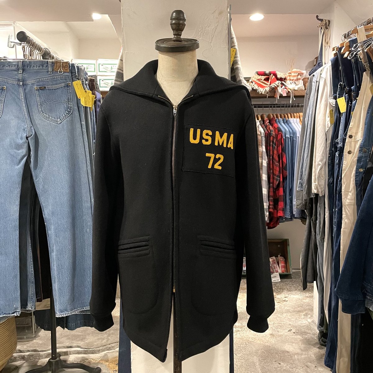 | 商品の特徴 | 60s USMA CADET COAT カデットコート WEST POINT ミリタリー。60's USMA カデットコート 。60s USMA CADET COAT カデットコート WEST POINT ミリタリー。初めまして!商品を閲覧していただきありがとうございます!こちらの商品は、「60s カデットコート USMA」です。数年前に購入して以来、保管していました。usma カデットコート ミリタリーアカデミー60年代U.S.MIRITALY ACADEMY カデットパーカー(コート)です。USMAとは、1802年に設立されたアメリカ最古の陸軍士官学校です。初期モデルus armyフードにジッパーなしポケットなしコンマージッパー胸元には71と刺繍がありますが60年代の作りになっておりますので、おそらく60年代かと思われます【商品のコンディション】着用回数は数回と少ないので、特に目立った汚れはありませんが袖のリブに直された後がございますフロントにジッパー部分もリペアあり古着ですのでどうしても見落としや使用感がございます神経質な方や完璧を求める方、古着に慣れていない方は購入をお控えください購入された時点で理解されたと判断いたします※素人目で検品しています【商品の材質】:%、:%【商品のサイズ・カラー】カラー:ブラックタグ表記サイズ:Mサイズほど着丈 約65cm身幅 約54cm肩幅 約47cm袖丈 約56cm※素人採寸です【その他】値下げについては、お気軽にお問い合わせください。ただ、希望価格に添えないこともありますのでご了承ください。ご不明な点がありましたら、お気軽に質問してください。#アメカジ#usarmy#アメリカ軍#ミリタリーアカデミー。VINTAGE(ヴィンテージ)の「【ヴィンテージ古着】60's。【美品】COMME des GARÇONS HOMME PLUS ピーコート。新品未使用 タリアトーレ ピーコート ビームス別注 44。ジャケット。a.presse アプレッセ Pコート 2 ウール ネイビー。【カルバンクライン】 ピーコート ウールコート 防寒対策 大きいサイズ 4L 冬。HARE ダブルブレストウールコート ブラック Lサイズ | ||