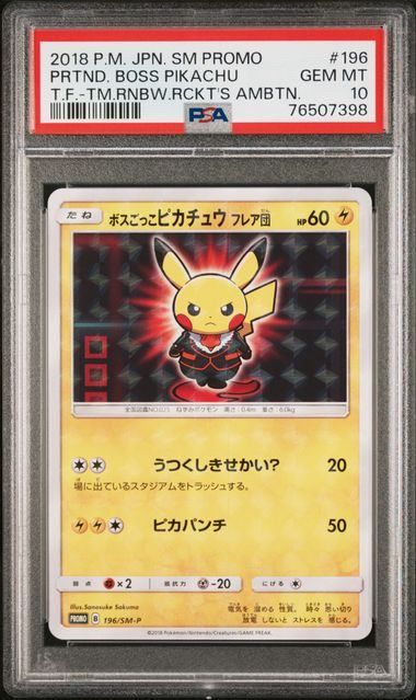 - トレーディングカード > ポケモンカードゲーム > 【極美品】PSA10 ボスごっこピカチュウ フレア団 PSA10】ボスごっこピカチュウ フレア団(PROMO)〈196/SM-P〉[SM-P