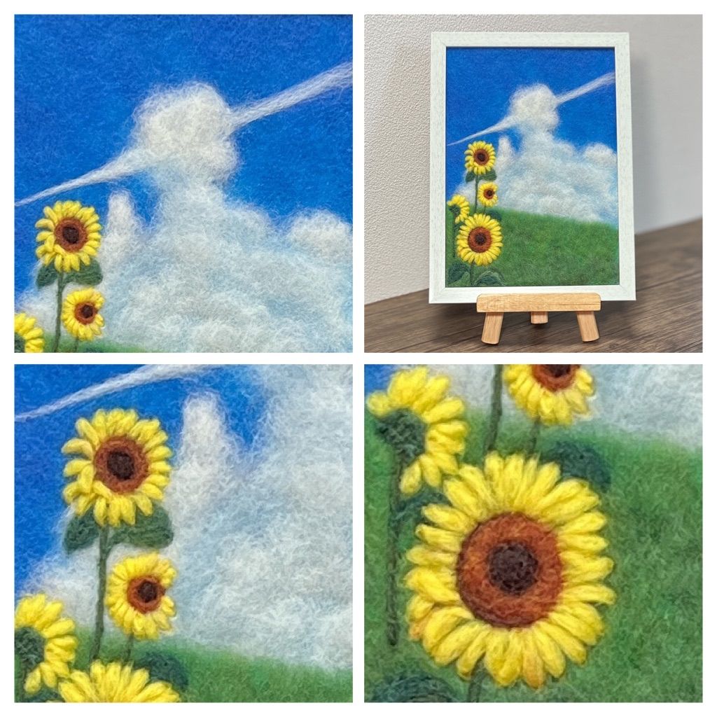 | メーカー | く*ん様 羊毛フェルト 羊毛絵画 『里の夏とひまわり畑』ハンドメイド 羊毛刺繍 |
